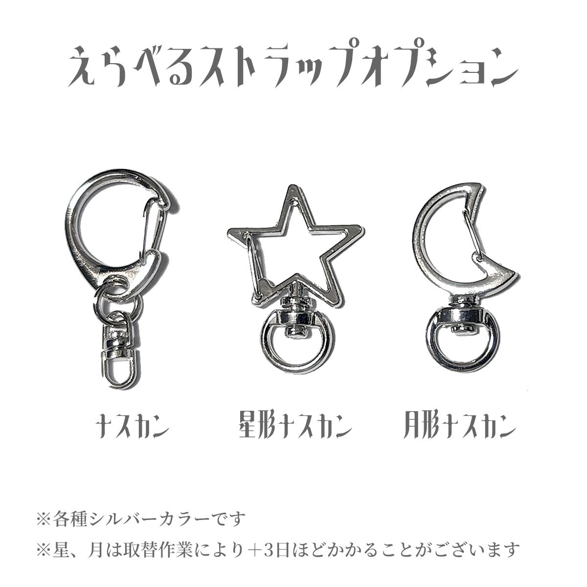 ストラップ部分は、オプションで「月形ナスカン」「星形ナスカン」に変更できます。