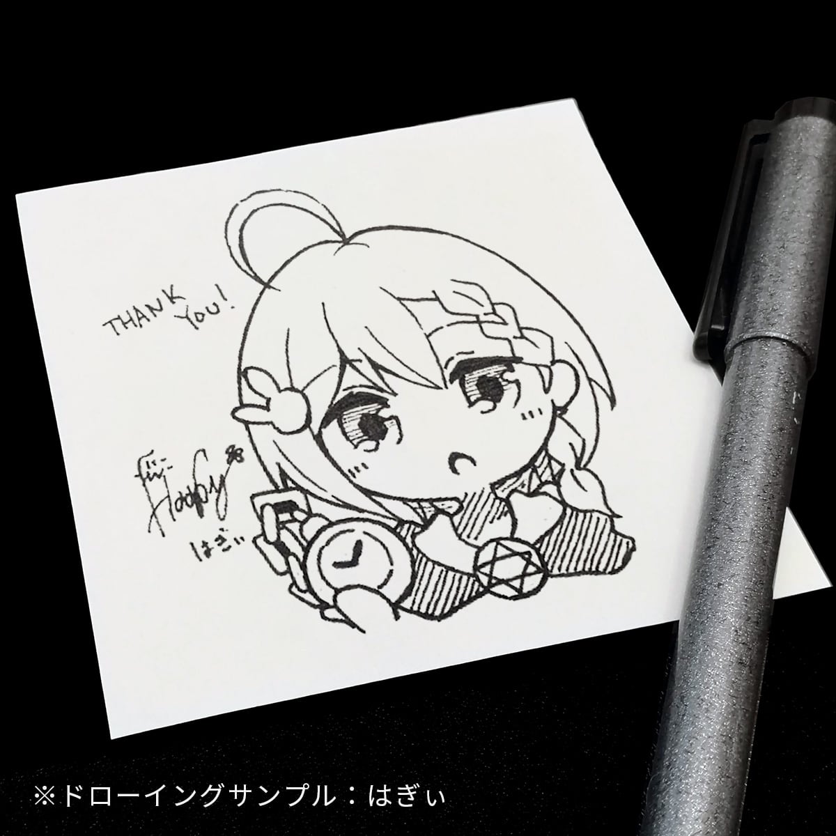 返礼品として、はぎぃ直筆キャラクタードローイングをお渡しさせていただきます。