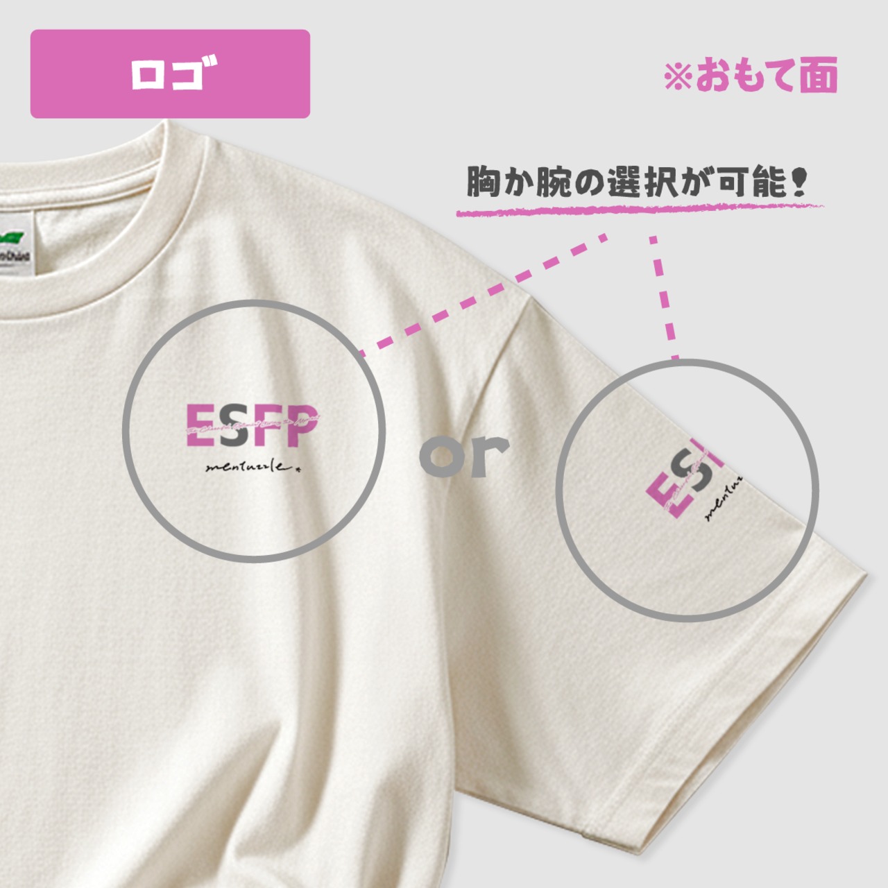 【胸or袖】のお好きなプリント位置をご選択いただけます。