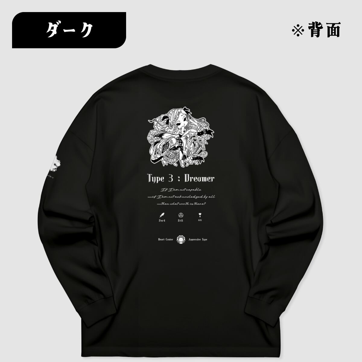【ビッグシルエットロングTシャツ】タイプ3-求める人(ダーク)|ブラック