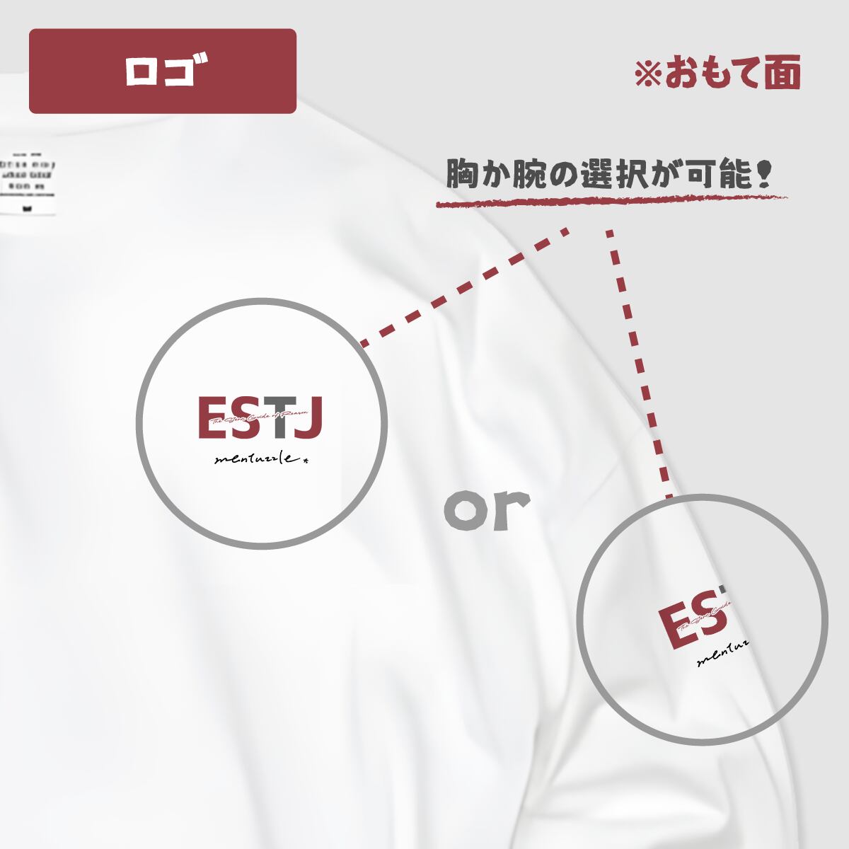 【胸or袖】のお好きなプリント位置をご選択いただけます。