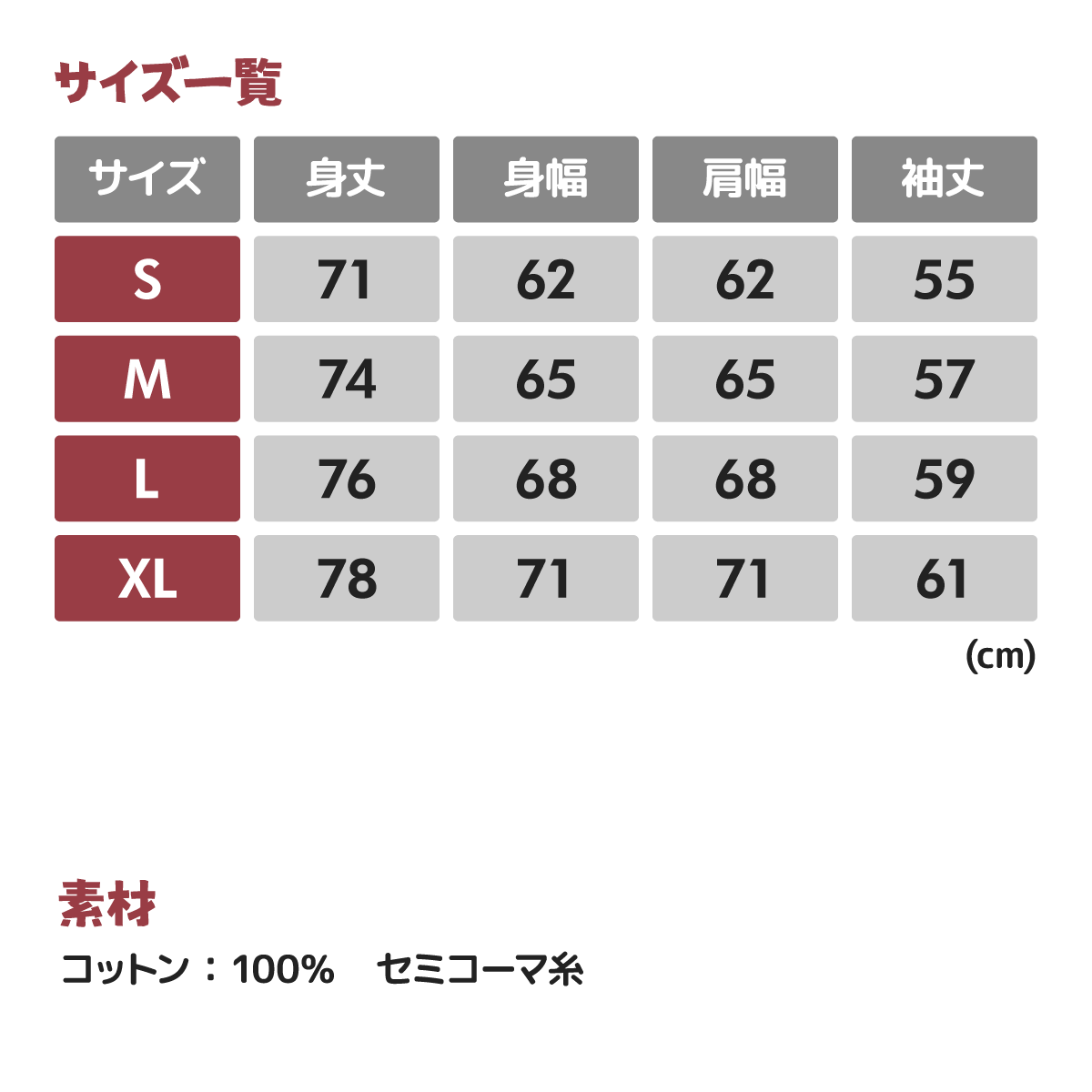 サイズ:S M L XL