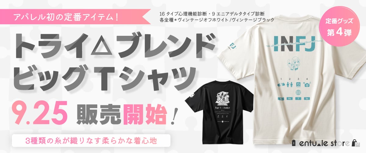 ■トライ△ブレンド ビッグTシャツ3種類のブレンド糸が織りなす混紡生地。柔らかな肌ざわりと、ヴィンテージテイストが魅力のトライブレンド ビッグシルエットTシャツを採用。お洒落なメインデザインは背中面に大胆プリント。そしてサブデザインである「mentuzzle&タイプのロゴ」は、【胸or袖】のお好きなプリント位置をご選択いただけます。※エニア限定:デルタ印字オプションあり